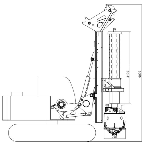 ●The working height is only 6 meters, equipped with a large torque output power head, and the maximum drilling diameter is 1 meter; very suitable for bored pile construction indoors, in factories, under bridges and in sites with limited height.